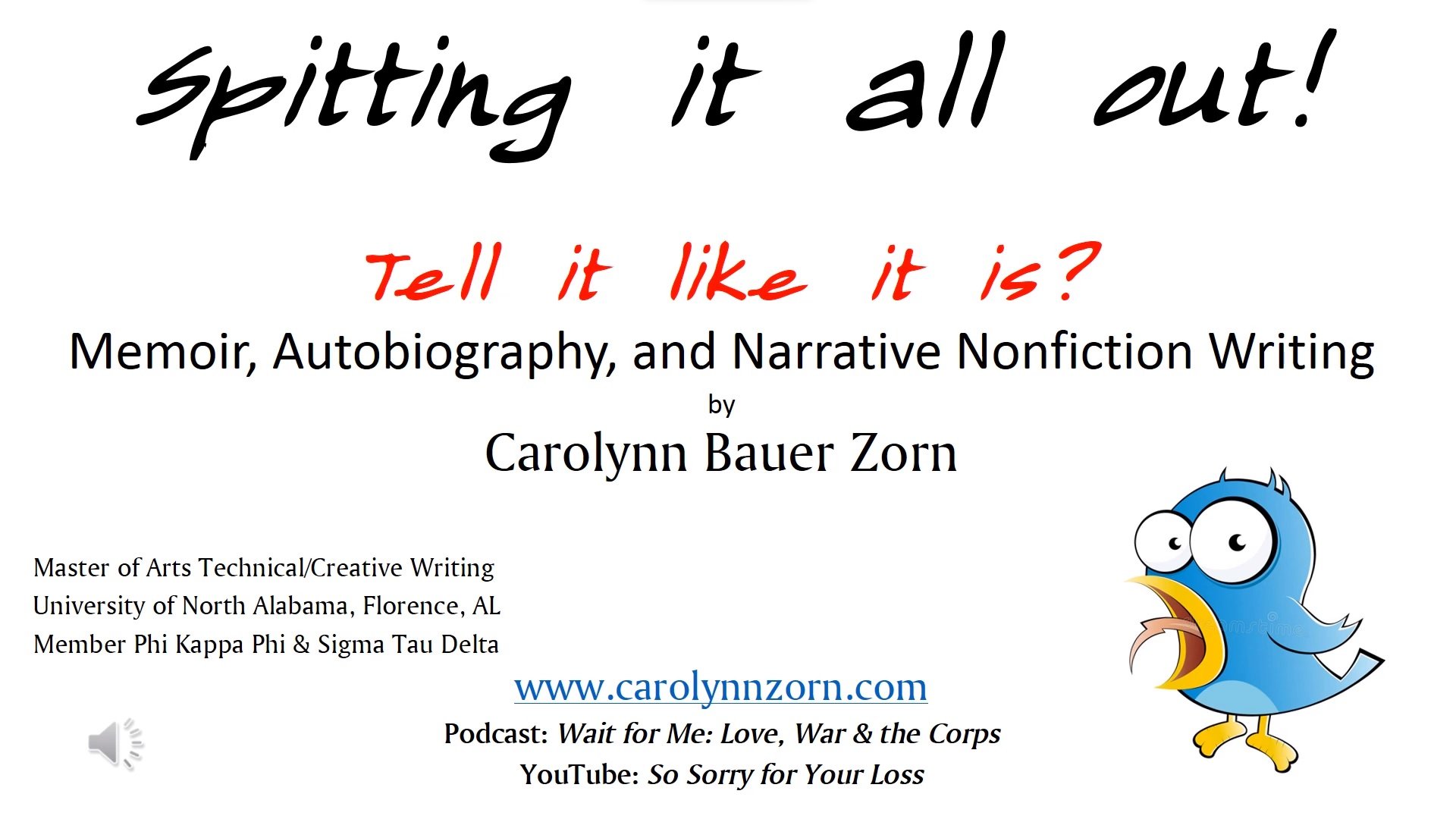 This is a presentation I did at the Shoals Writers Guild in Florence, AL. about memoir writing.